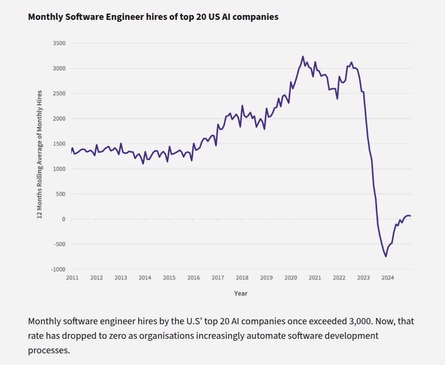 Zeki Data Report shows that AI tools disrupting the traditional hiring. The below zero hiring this year, means we had more layoff than hires.