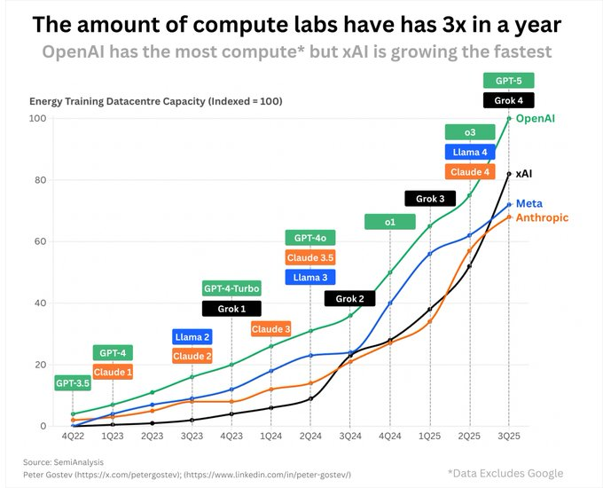 A lot of partnerships from OpenAI this past month, for a cumulative of 26GW of compute. To put this in perspective Bitcoin uses about 20 GW of electricity.