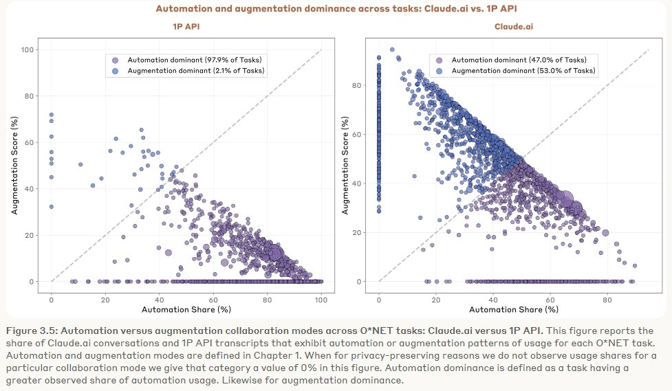 Claude also released how people are using their API and Claude.ai. The 1P API is used at 97% for automation.